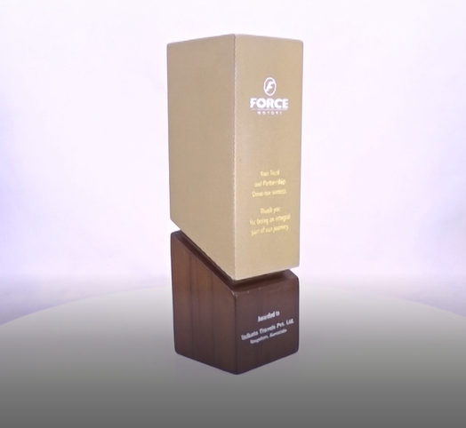 Bold, modern and minimal, this upright cube-style award sits on a wooden base and makes a striking impression. Ideal for long service recognition or leadership awards, with custom branding possible on all visible sides via UV or multi-colour print.